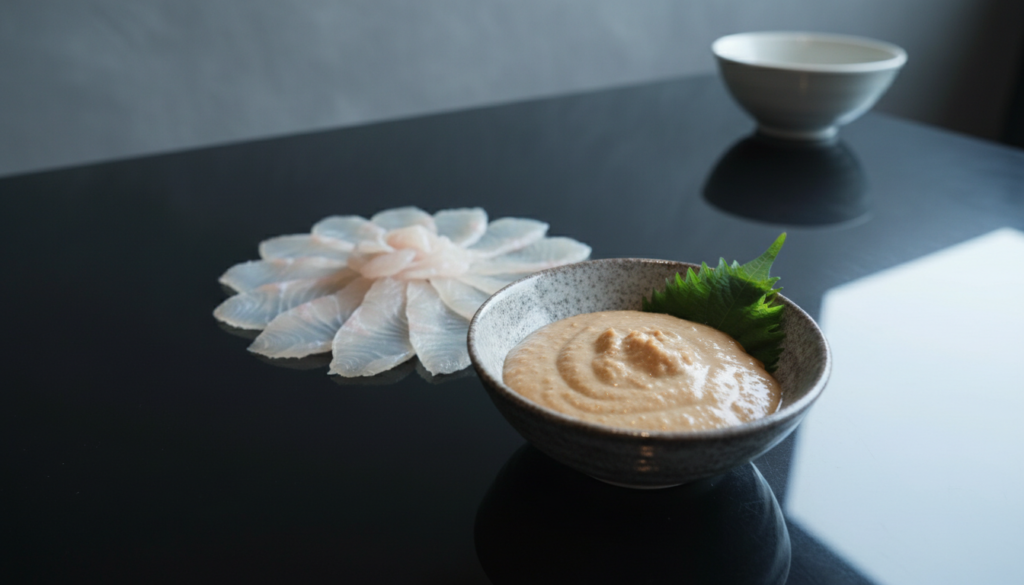 【肝醤油の極み】カワハギの薄造り、濃厚な肝を溶かして食べる至福