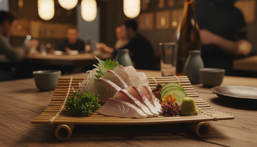 【コリコリ食感】カンパチの刺身、程よい脂と弾力がたまらない