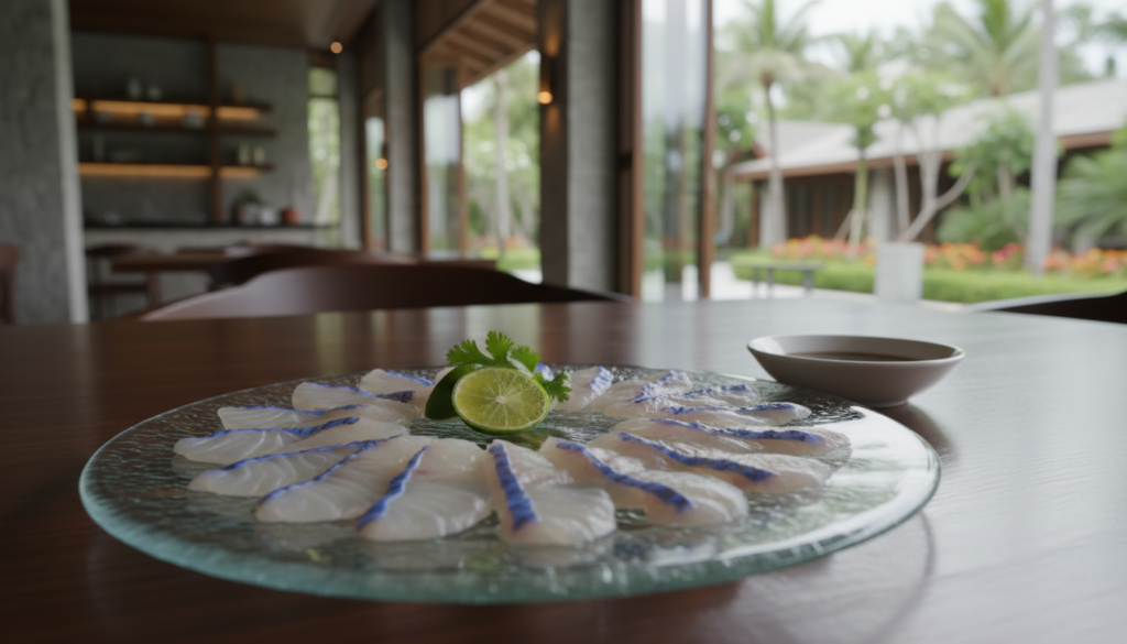 【青い衝撃】イラブチャーの刺身、鮮やかな青い皮と甘みのある白身