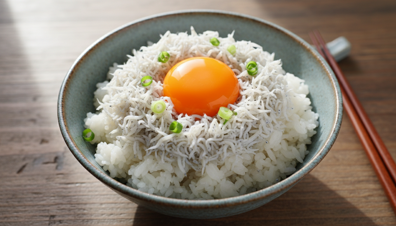 ご飯の上に真っ白なシラスがふんわり広がる様子は、それだけで食欲をそそります。湯気に混じる海の香りとほどよい塩気が、さらに食欲を引き立ててくれます。