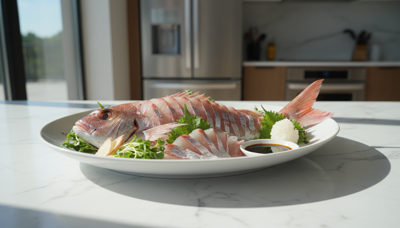 真鯛は体色の赤と身の白さのコントラストがはっきりしているため、紅白の色合いが強調され、日本の「おめでたい色彩感覚」ともよく合います。急速冷凍技術や血抜き処理の徹底により、遠方から届いた個体でも色ツヤを保ちやすく、料理人が盛り付けで華やかさを引き出しやすいことも、姿造りが選ばれる大きな理由のひとつです。