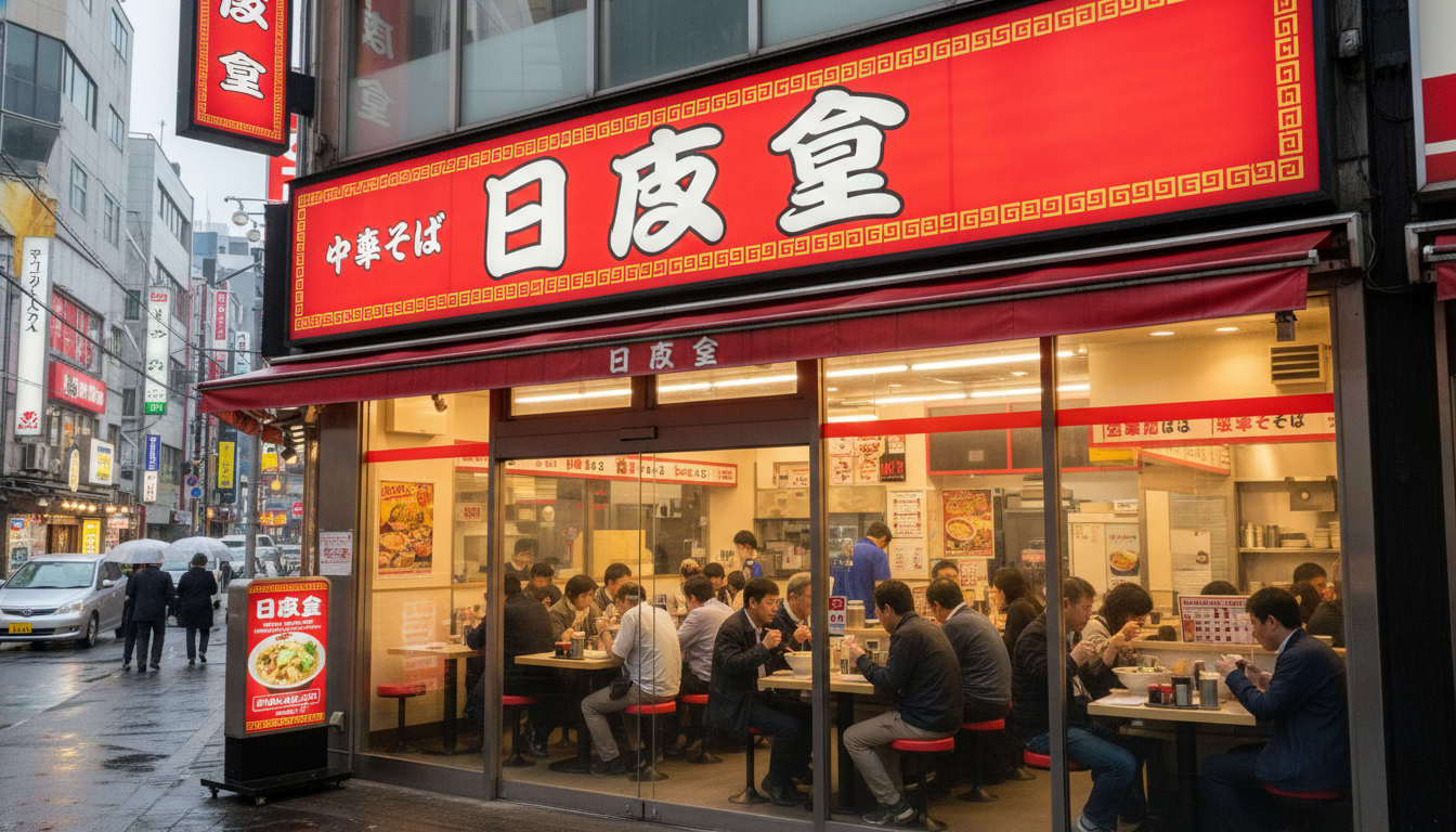日高屋は低価格・高回転の安定感に加え、定食から一品料理まで揃う汎用性が魅力です。店内は一人客も入りやすく、グループでも使いやすい雰囲気があります。