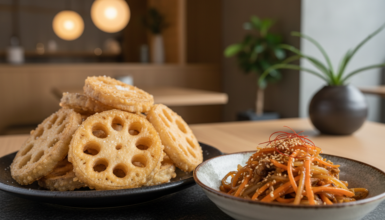 厚切りや薄切り、揚げ時間の違いで、ホクホク感とシャキシャキ感を両立できます。衣は軽めにするとレンコンの甘みが引き立ちます。