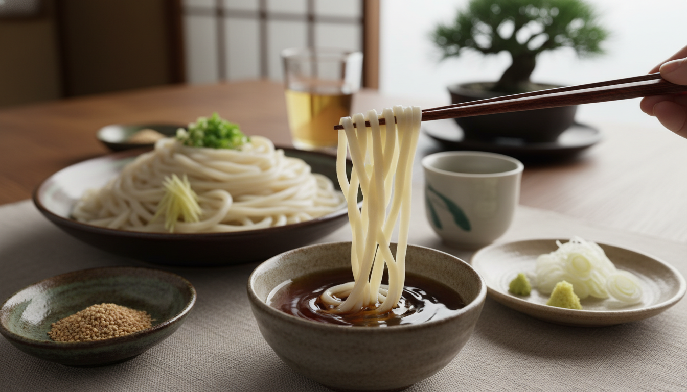 などを添えるのが一般的です。麺とつゆを別にすることで、最後まで伸びにくく、コシやのどごしを存分に楽しめる食べ方として根付いています。